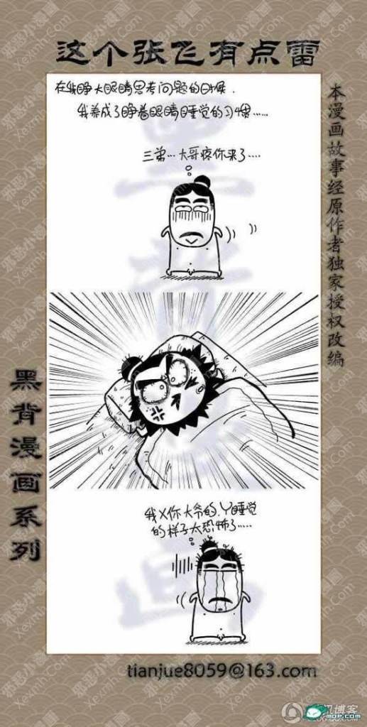 猛张飞看似粗犷,但心思也是非常细密的!刘关张好基友,腹黑的孔明,娘炮的子龙,龌龊的魏延,原来三国也是可以如此可爱的。